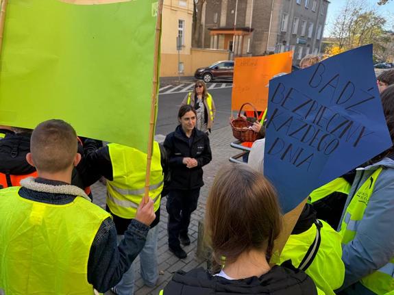 Z transparentami, w kamizelkach i z uśmiechem na twarzy. Uczniowie Szkoły Podstawowej nr 1 im. Kawalerów Orderu Uśmiechu w Nysie odwiedzili Komendę Powiatową Policji w ramach konkursu „Odblaskowa szkoła”. Młodzież wspólnie z opiekunami wyruszyła na spacer po centrum miasta, promując bezpieczeństwo pieszych i noszenie elementów odblaskowych. Spotkanie z policjantką było okazją do rozmowy o zasadach ruchu drogowego i roli odblasków w ratowaniu życia.