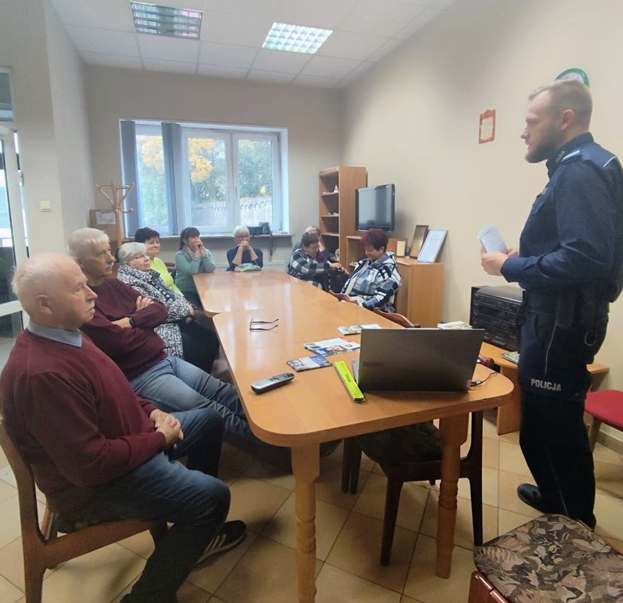 We wtorek 14 października dzielnicowy z Komisariatu Policji w Paczkowie spotkał się z kolejną grupą, aby przypomnieć najważniejsze zasady bezpieczeństwa i ostrzec ich przed oszustami, którzy chcą wykorzystać ufność i pomoc osób starszych.