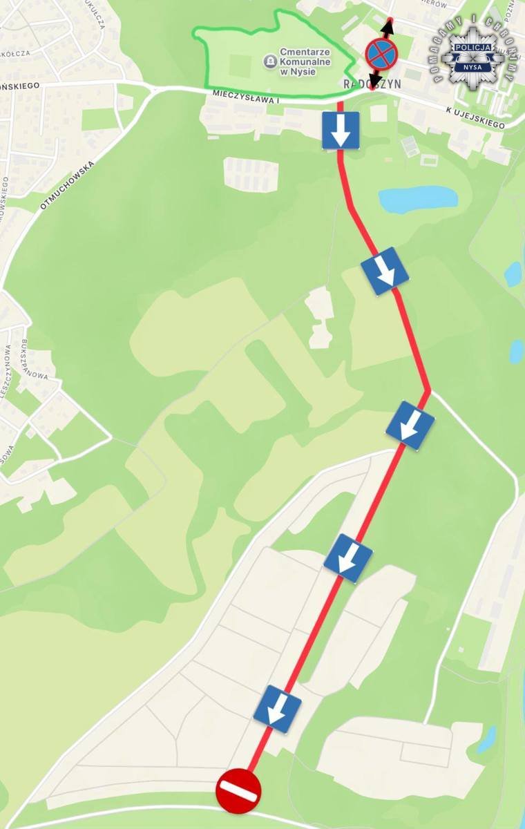 W okresie od 30.10.2025 r. od godz. 6:00 do 3.11.2021 r. do godz. 9:00, na drogach Nysy zostaną wprowadzone zmiany w organizacji ruchu.