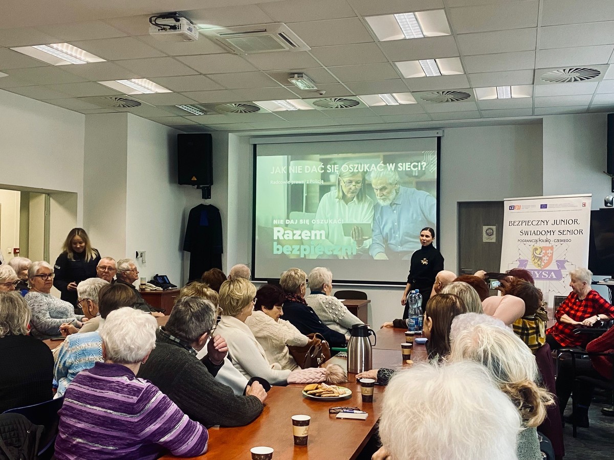 W ramach działań profilaktycznych „Nie daj się oszukać. Razem bezpieczni” 13 stycznia 2026 roku w Komendzie Powiatowej Policji w Nysie odbyło się spotkanie edukacyjno-informacyjne skierowane do seniorów. W wydarzeniu wzięło udział około 70 osób z nyskich klubów seniora, m.in. Klub Senior+ Nysa, Klub Senior II oraz członkowie Stowarzyszenia Diabetyków w Nysie.