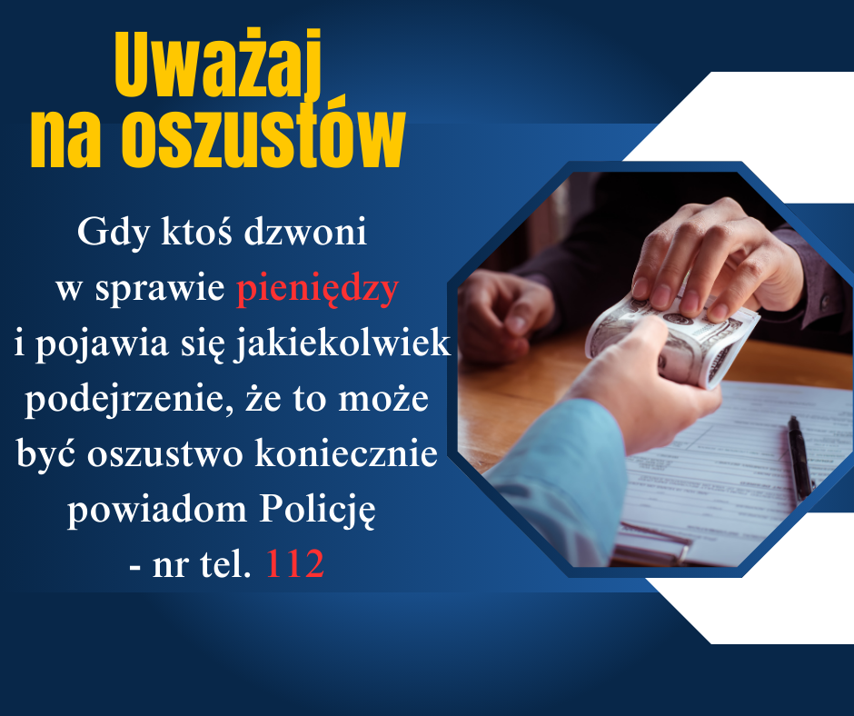 Gdy ktoś dzwoni w takiej sprawie i pojawia się jakiekolwiek podejrzenie, że to może być oszustwo koniecznie powiadom Policję - nr tel. 112