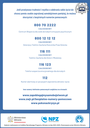 Zjawisko samobójstw jest złożonym problemem, na który wpływa wiele czynników. Jego skutki dotykają nie tylko osób decydujących się na czyn samobójczy, lecz również ich rodzin, najbliższego środowiska i całego społeczeństwa. Zjawisku temu można i należy przeciwdziałać poprzez właściwe oddziaływanie profilaktyczne i interwencyjne. Wczesne identyfikowanie i adekwatne wspieranie osób w kryzysie jest kluczowym elementem zapobiegania samobójstwom. Każdy z nas może przyczynić się do ratowania ludzkiego życia.